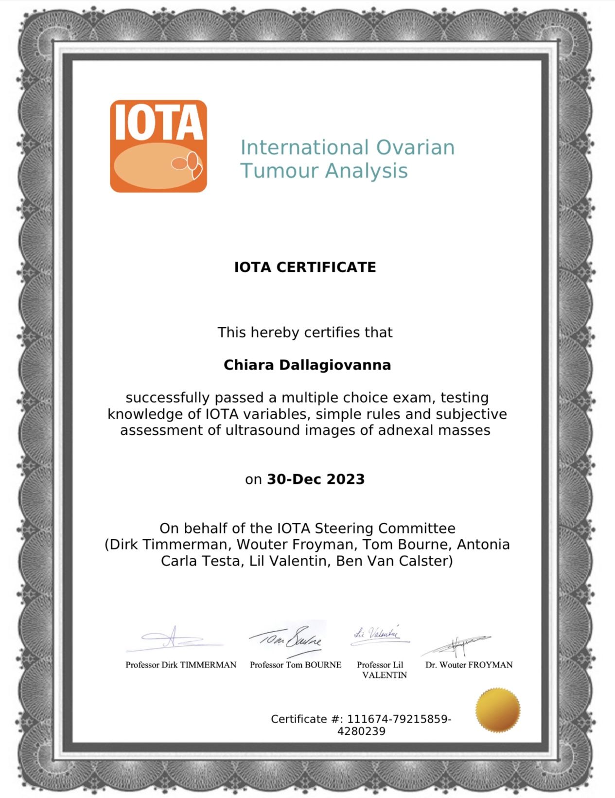 Mi sono laureata in Medicina e Chirurgia a pieni voti nel 2013 presso la Libera Università Vita‑Salute San Raffaele. Nel 2020 ho conseguito la specializzazione in Ginecologia e Ostetricia a pieni voti all’Università degli Studi di Milano.